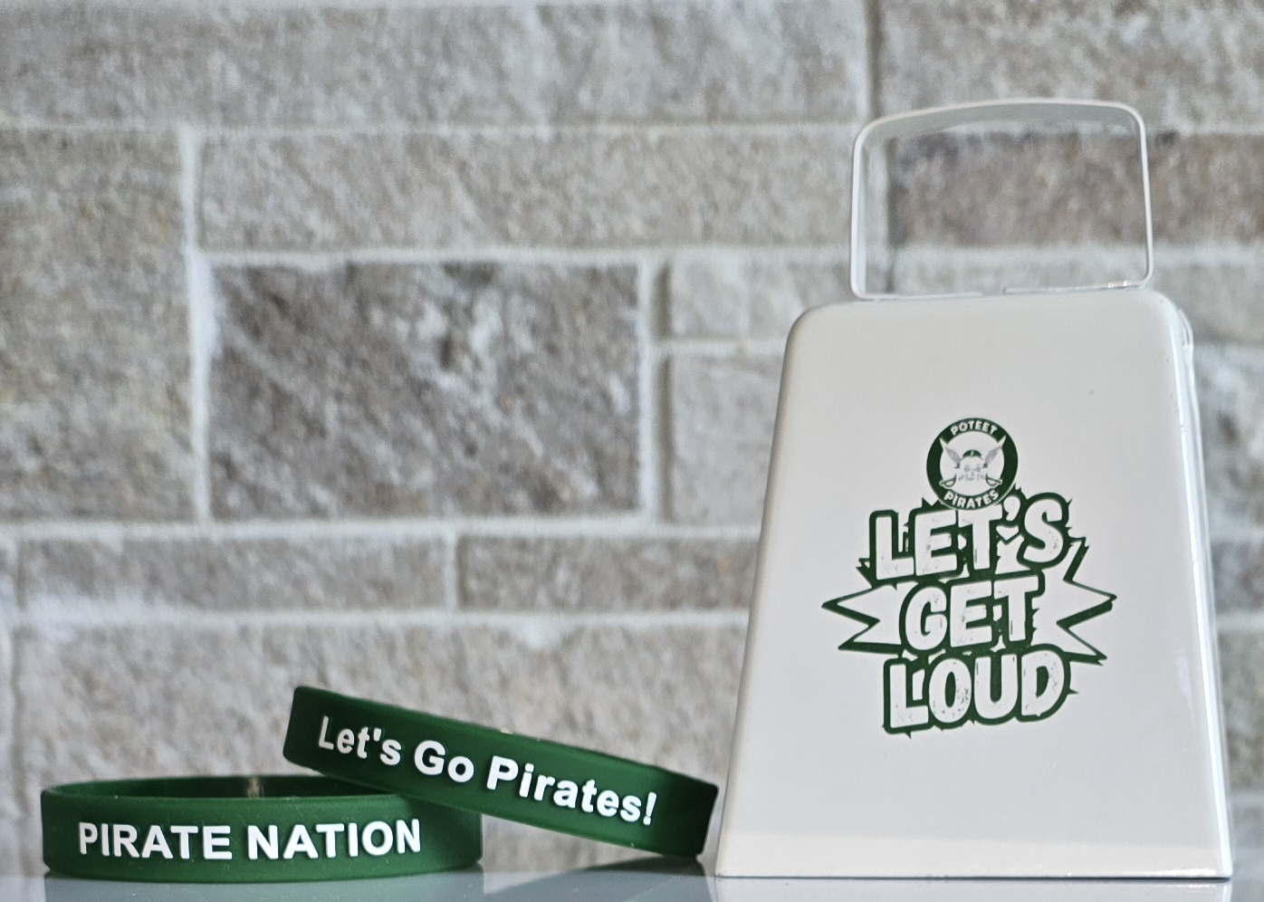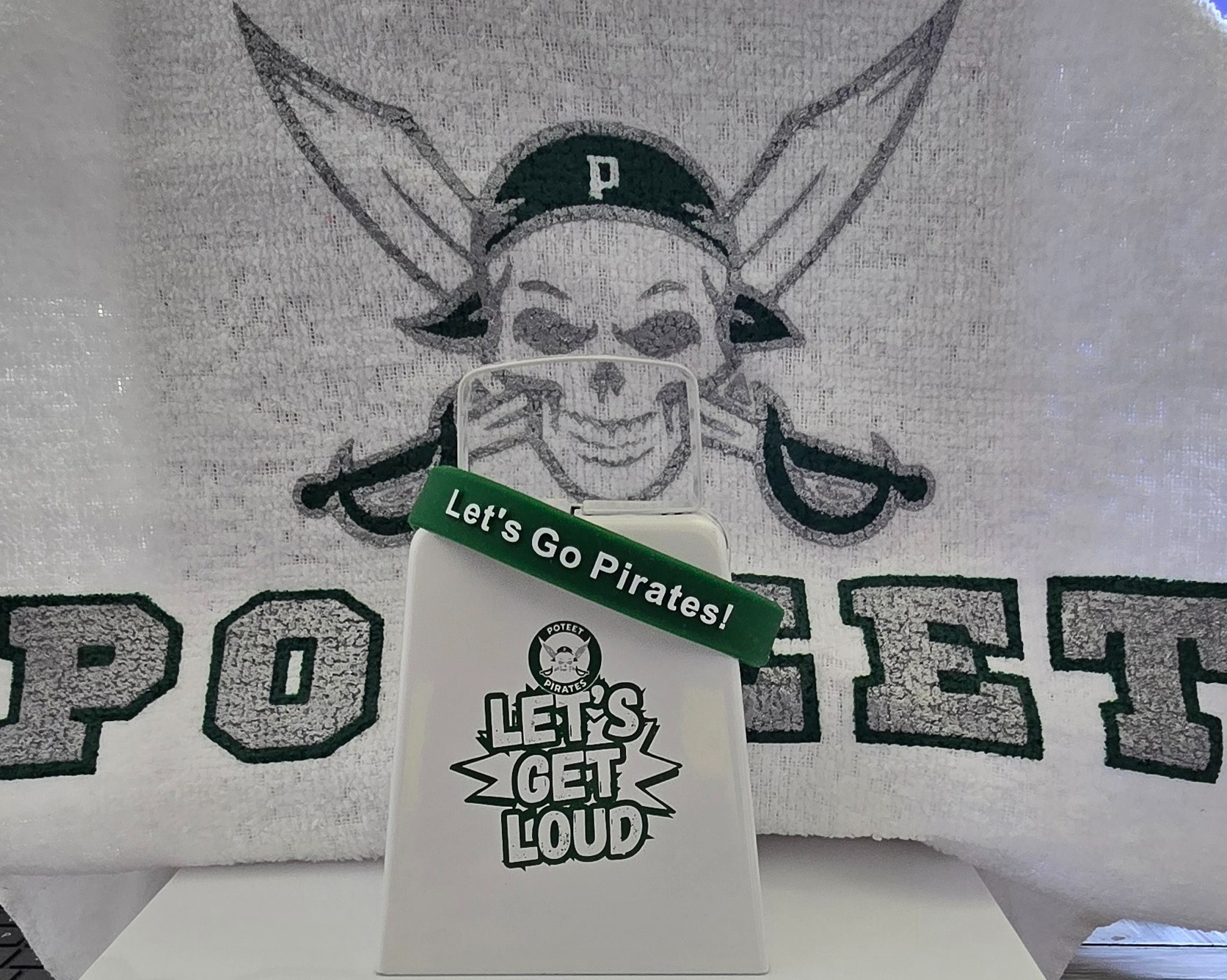 1 "Get Rowdy" Cow bell1 Spirit Towel1 Pirate wristband1 green sling bag
